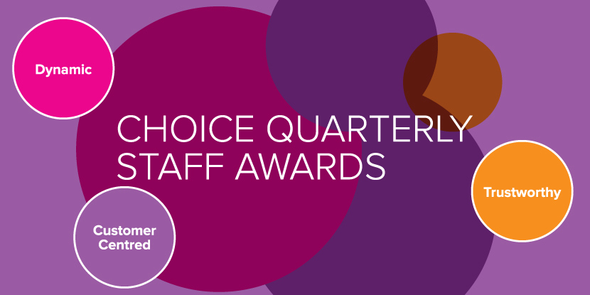 The Choice staff recognition awards for last quarter were presented by Michael McDonnell this week to three deserving staff members; Jeffrey Hillier (customer centred), Paul O’Kane (dynamic) and Lianne Hillan (trustworthy).