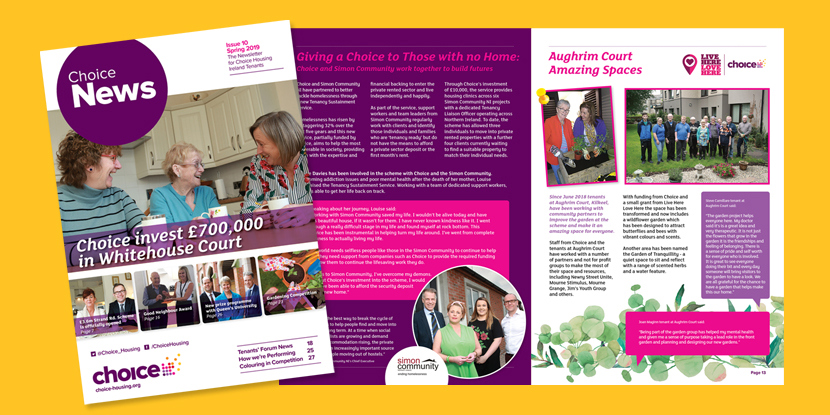 If you would like to submit a feature for consideration for the next edition of Choice News – such as a poem, a personal achievement, an interesting story, or indeed anything you feel would be of interest to other Choice tenants – then please send your article(s) to: The Editor, Choice News, FREEPOST BEL2371, Belfast BT1 6BR