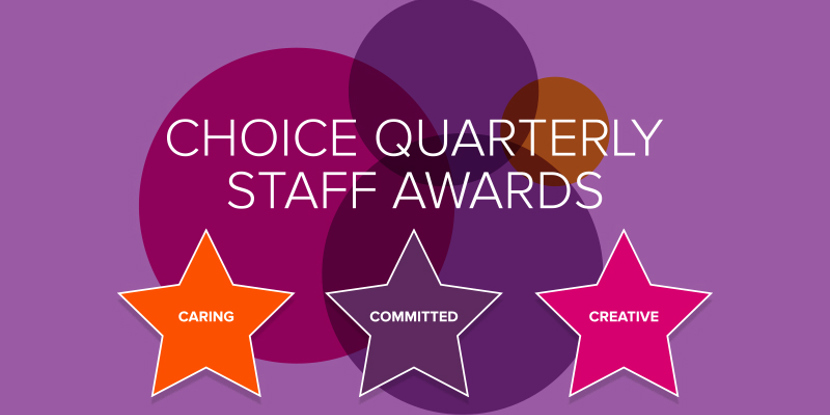 At Choice we hold Quarterly Staff Recognition Awards to reward those staff members within the organisation who embody our values of being Caring, Committed and Creative. We’re pleased to announce the 2021/22 Quarter 2 staff recognition award winners as follows: