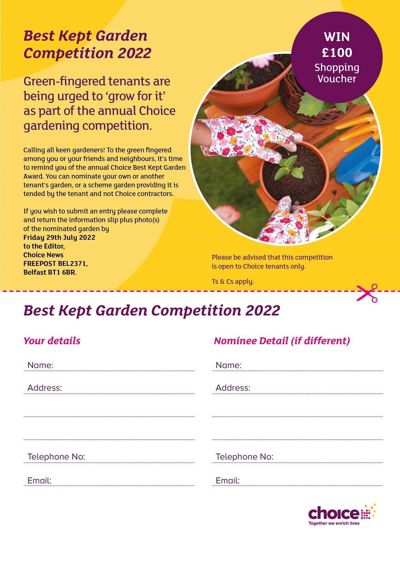 Calling all keen gardeners, it's time to remind you of the annual Choice Best Kept Garden Competition 2022!