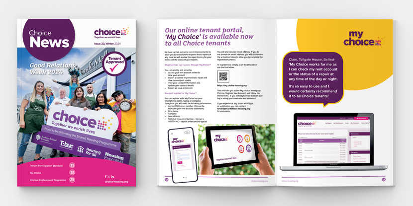 My Choice – through our online tenant portal you can access your rent account to view your rent statement, report a non-emergency repair and amend your contact information. You can find out more about My Choice and the recent improvements to the app on page 12.