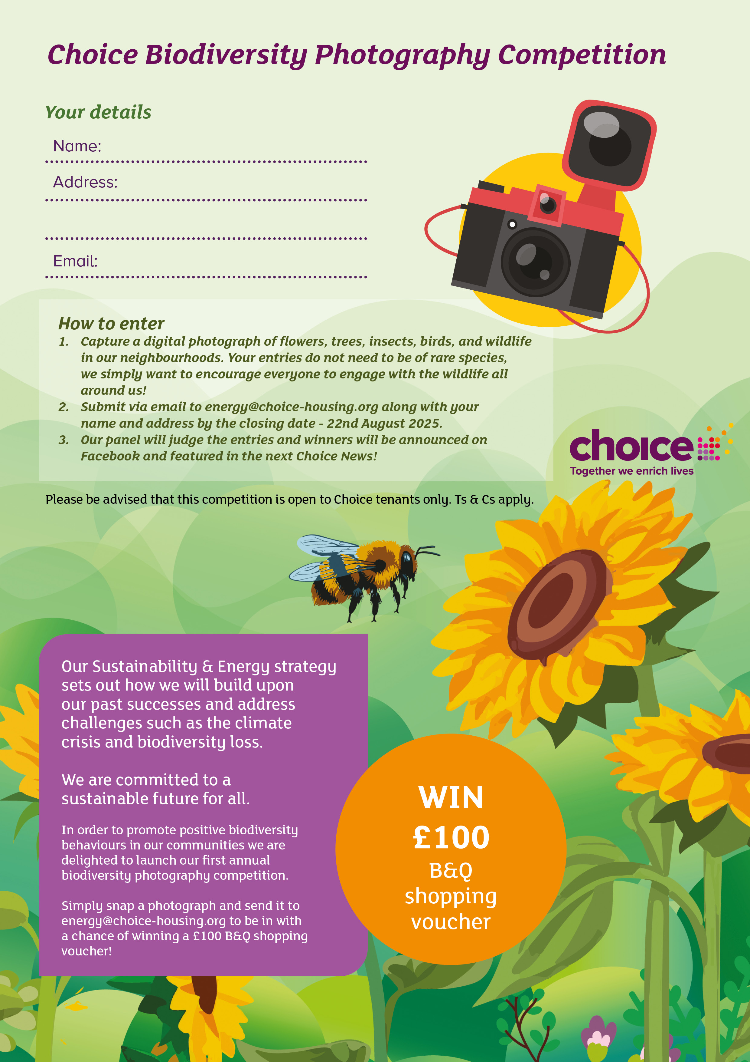 This competition is part of Choice's ongoing Sustainability & Energy Strategy, which is committed to tackling biodiversity loss and climate change through community involvement.