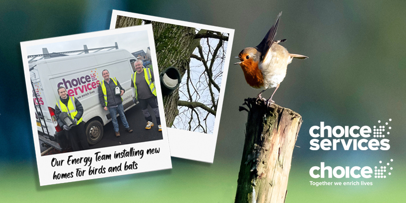 Choice alongside the help of Choice Services installed single bat boxes, multi-chamber bat roosts, and different types of bird boxes, to house a range of birds such as robins, wrens, blackbirds and blue tits. Many of these new homes have also been located close to an area which was recently planted with wildflowers, providing food for pollinating insects, birds and bats. Swift boxes are also being fitted on the new apartment blocks at the housing development which are due to be completed later this year.