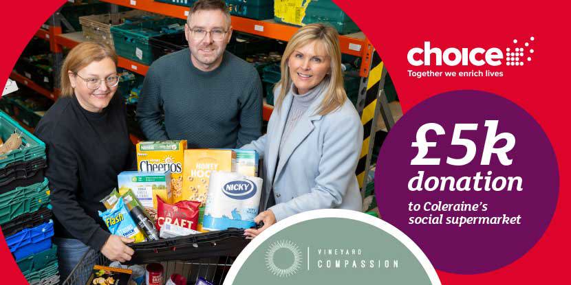 Ricky Wright, CEO at Vineyard Compassion, said: “On behalf of everyone at Vineyard Compassion, we’d like to express our heartfelt thanks to Choice for their generous £5,000 donation to support our Social Supermarket. This contribution will have a direct and lasting impact on individuals and families across Coleraine who are struggling with the rising cost of living. At Vineyard Compassion, we believe that every person deserves the opportunity to move from crisis to their full potential, and Choice’s support helps make that possible.”